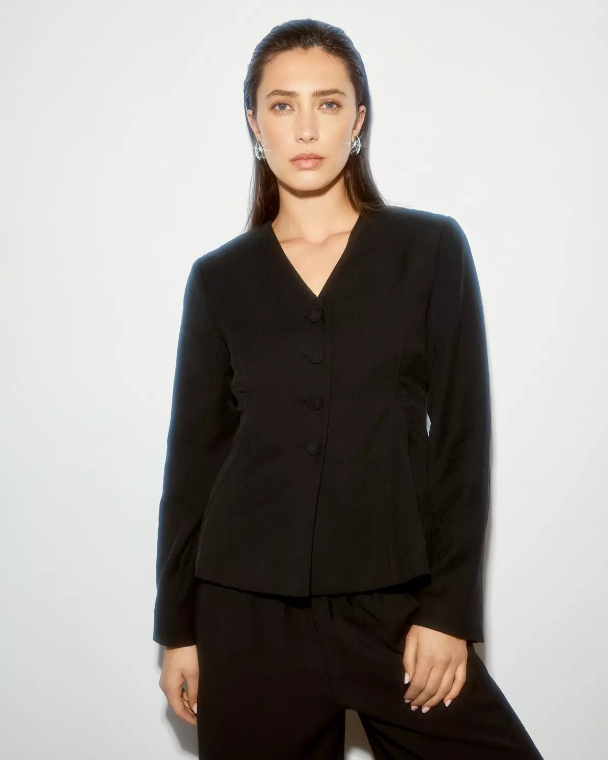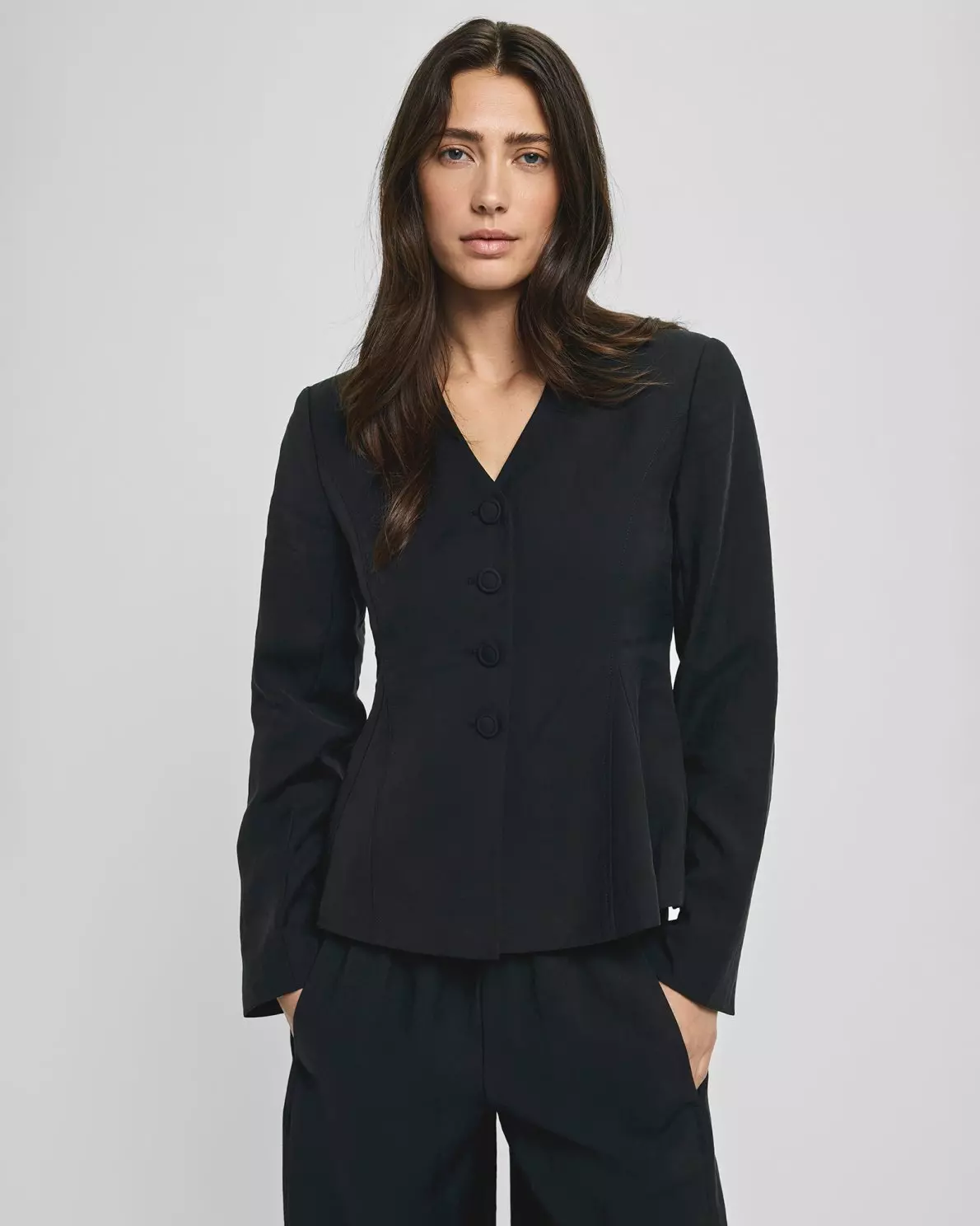 MSCHManny blazer er en tettsittende blazer med fire knapper og legg i midjen.