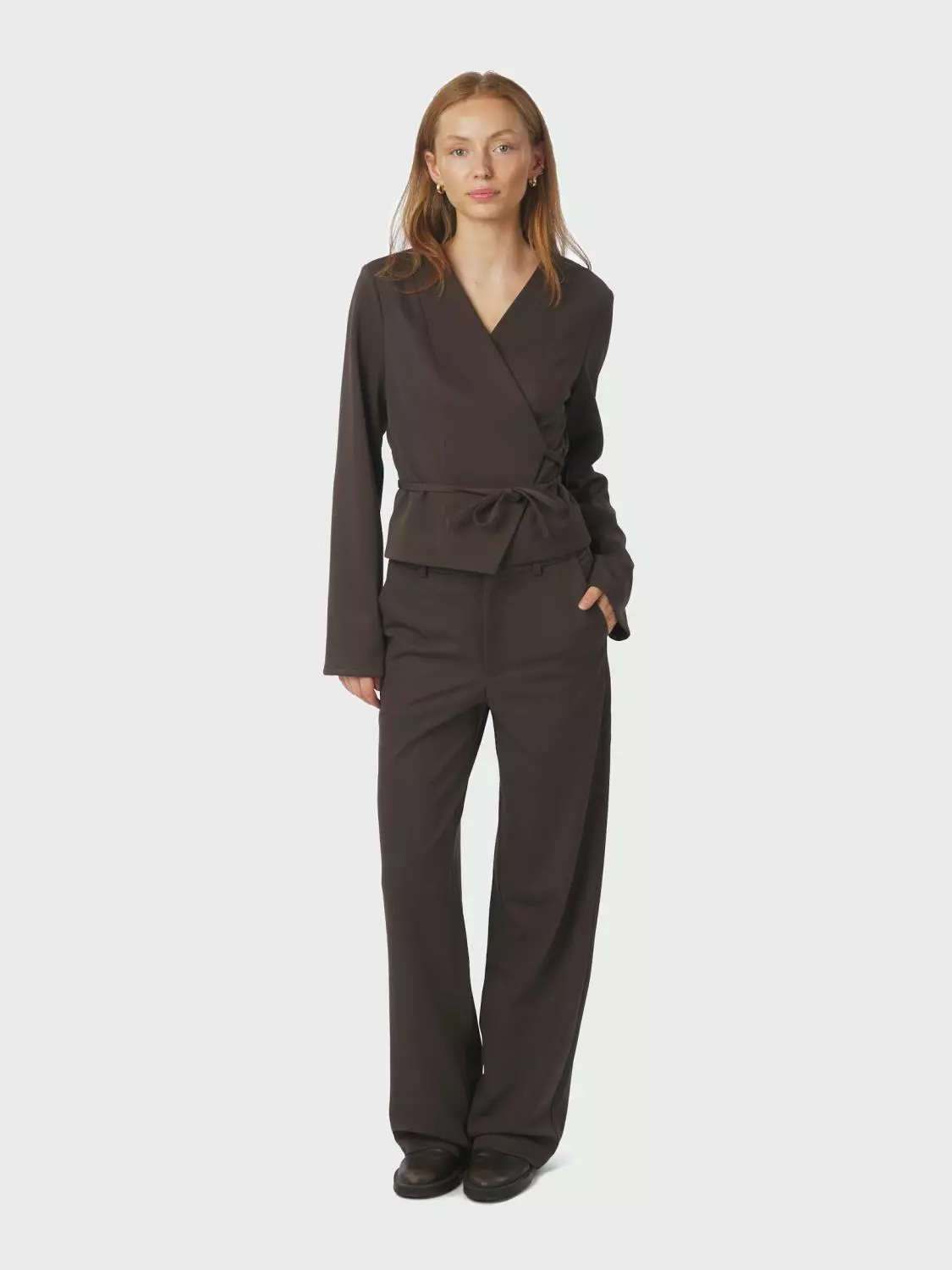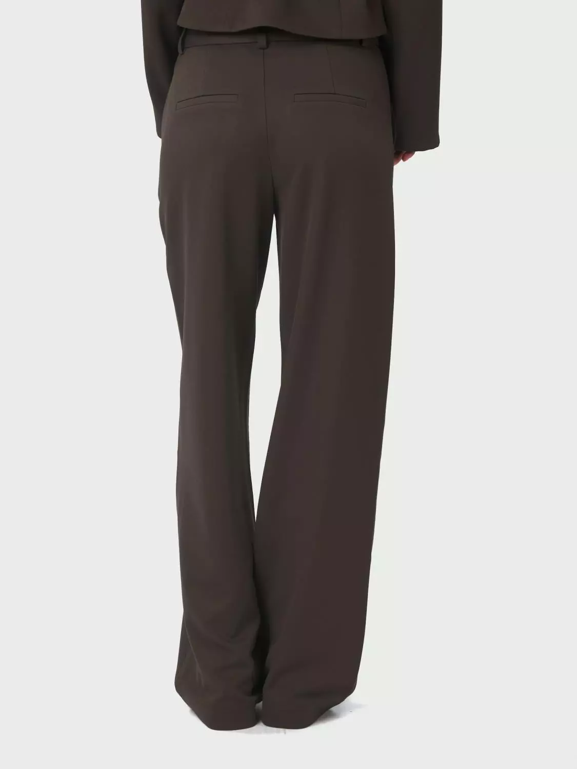 Kule bukser med vide ben og høy midje. Kommer i en fin elastisk kvalitet med struktur. Modellen er 176 cm og har på seg størrelse 36.
