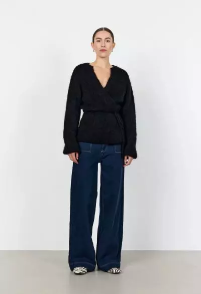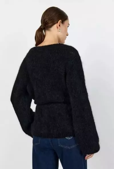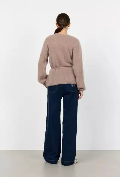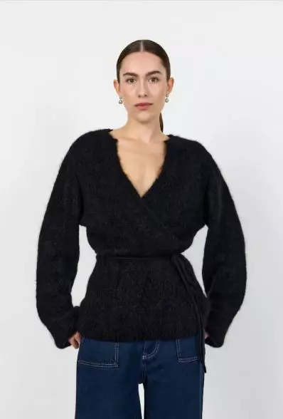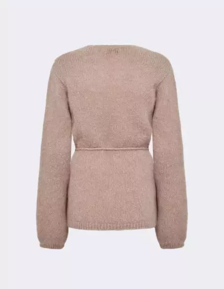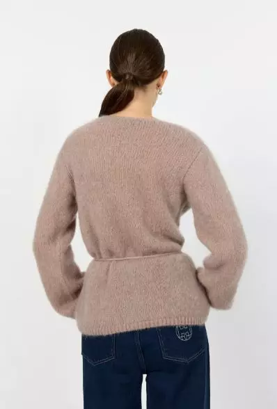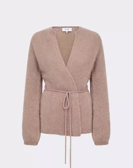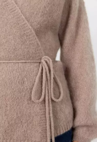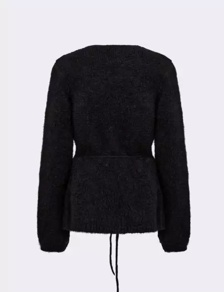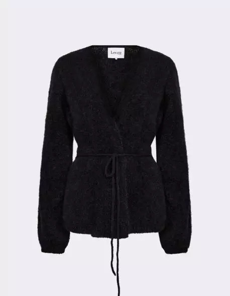 LR-NOREEN 7 er en cardigan laget av 53 % mohair, 45 % polyamid og 2 % elastan. Denne elegante cardiganen har en klassisk V-hals, knytebånd i midjen og lange ermer med myk tekstur. Kombiner den med skreddersydde bukser for et kult og sofistikert utseende.