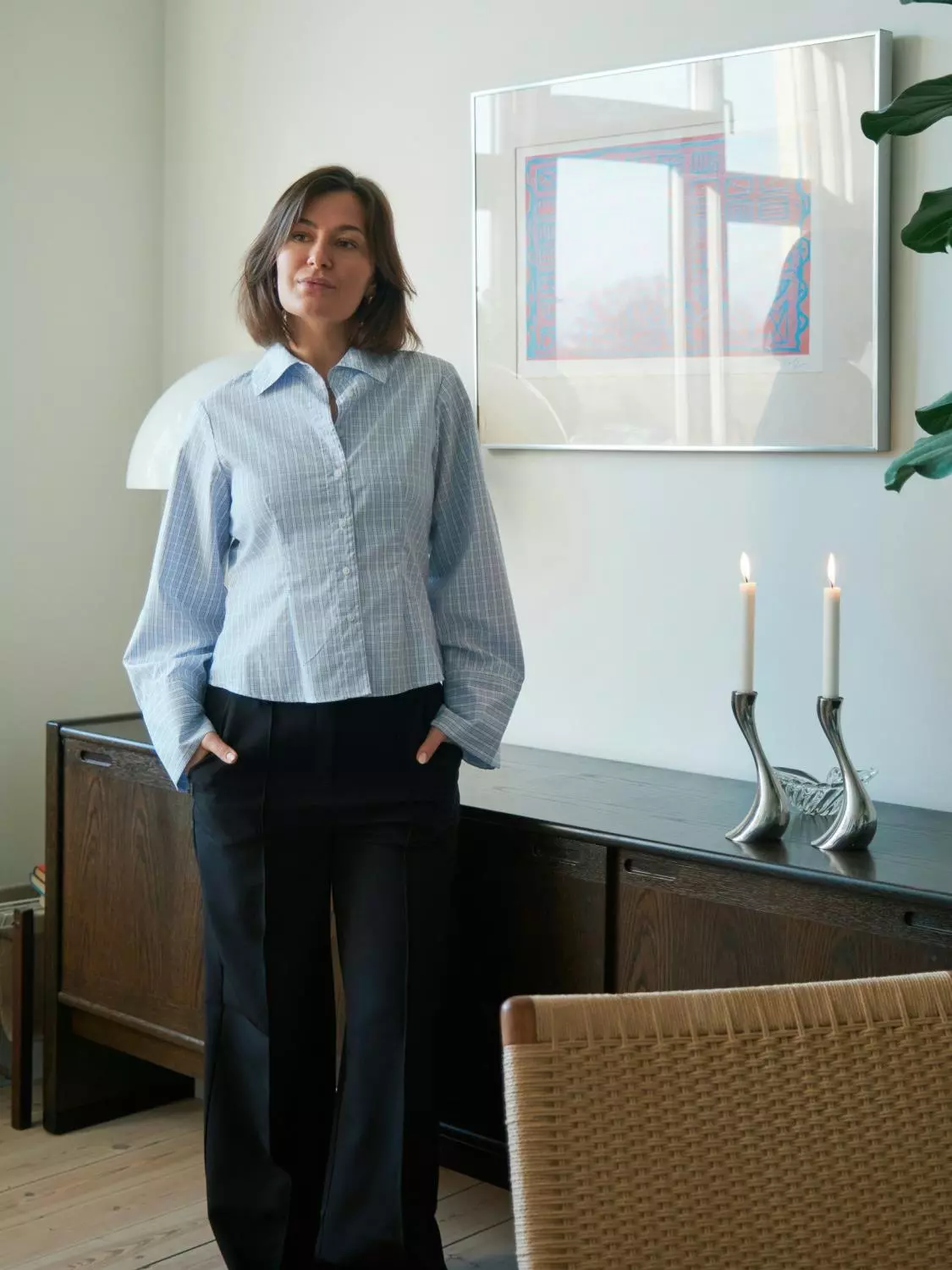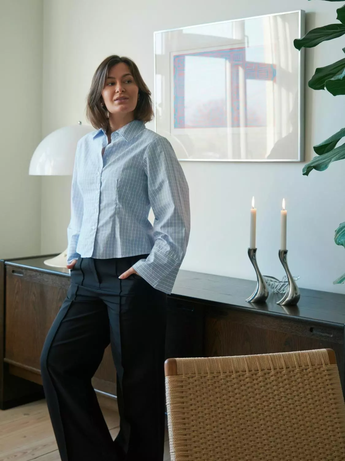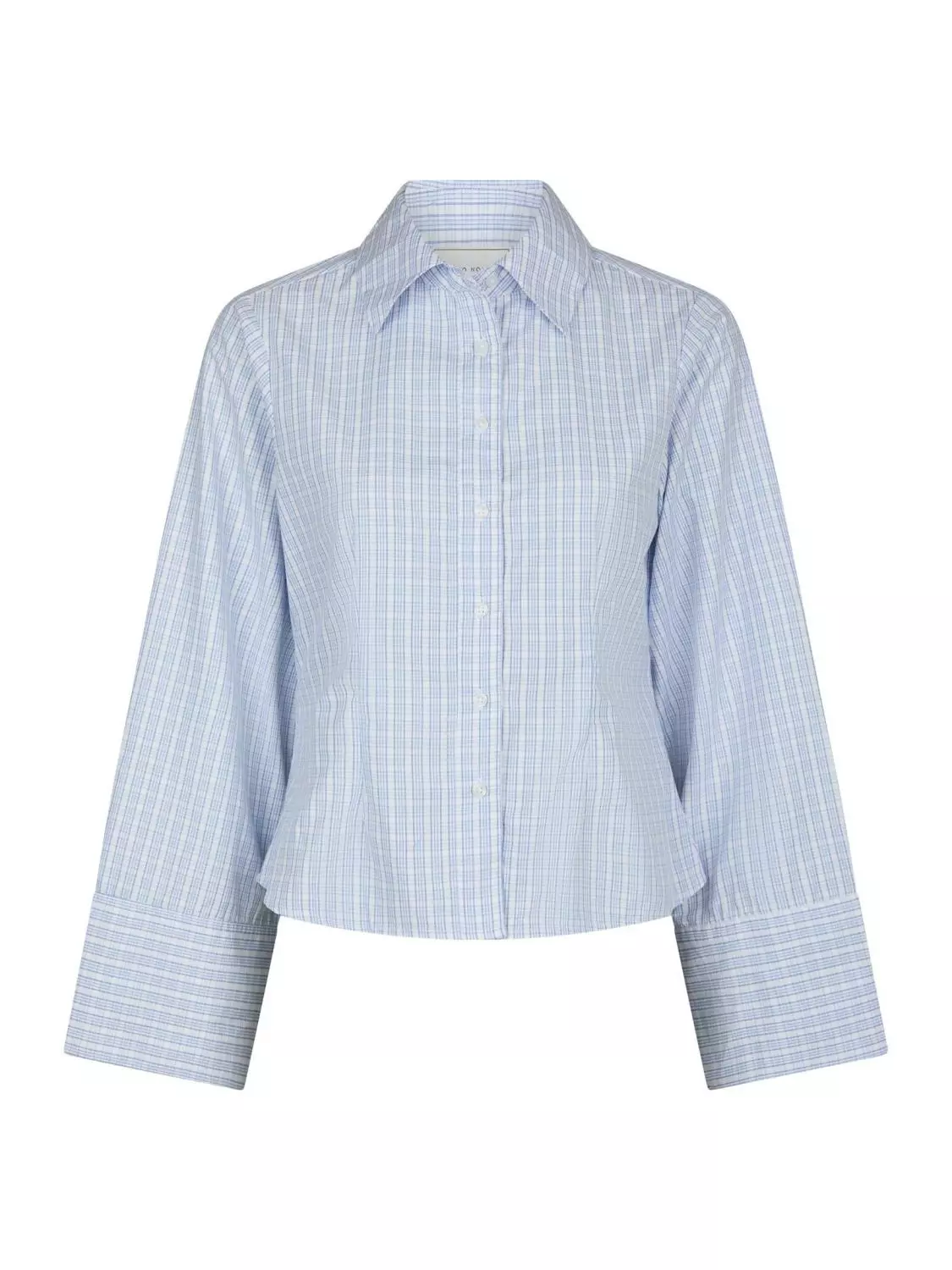 Stilig skjorte med brede ermer og mansjett. Skjorten kommer i en fin kvalitet. Modellen er 176 cm høy og bruker størrelse 36.
