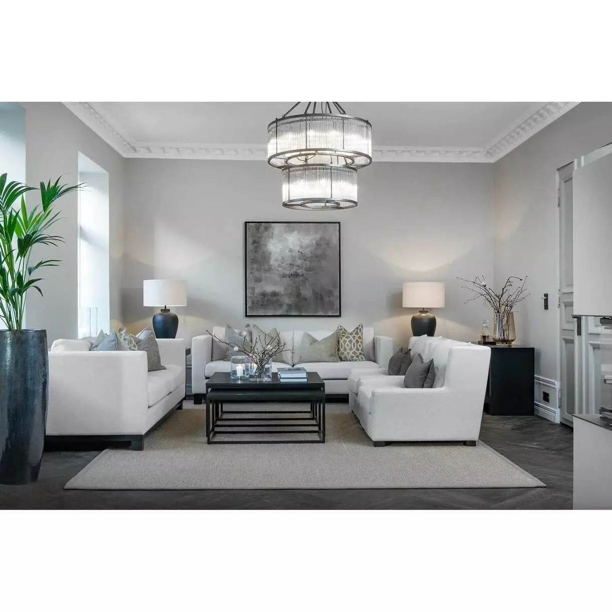 Clinton Dobbel er en taklampe som gjør et kraftfullt designstatement og henter sin inspirasjon fra den elegante art deco-stilen.