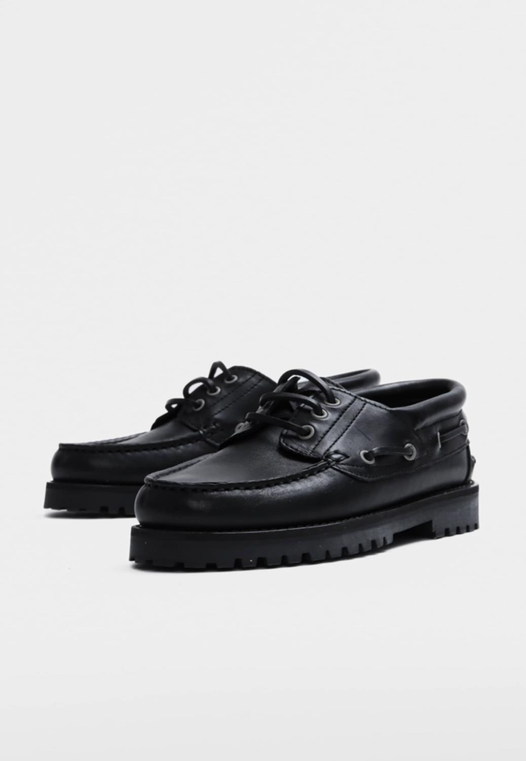 Taylor er en tidløs båtsko i kult svart skinn med synlige sømmer og raffinerte gulldetaljer. Skoen fremhever det klassiske utseendet, mens skinnfôret sikrer komfort hele dagen. Skoen er satt på en fleksibel gummisåle for optimalt grep og holdbarhet.
