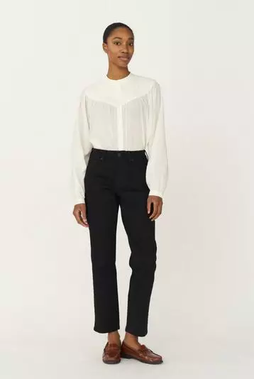 Trisha-jeans har vanlig passform, høy midje og avsmalnende ben.