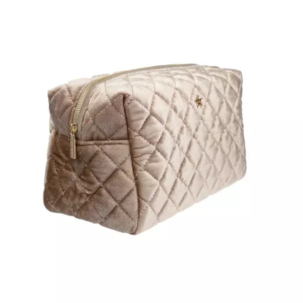 Stor, firkantet, quiltet sminkepung i fløyel