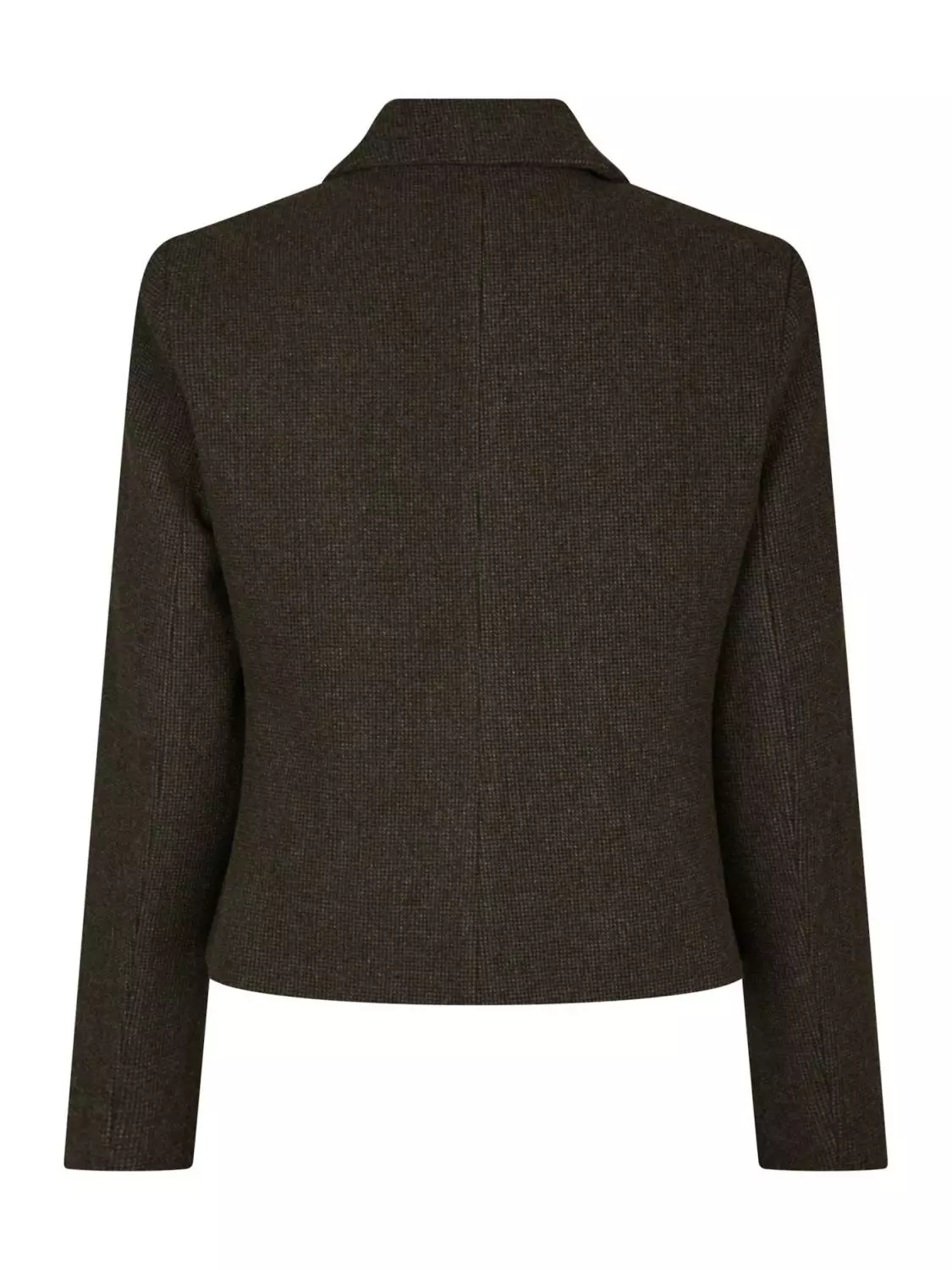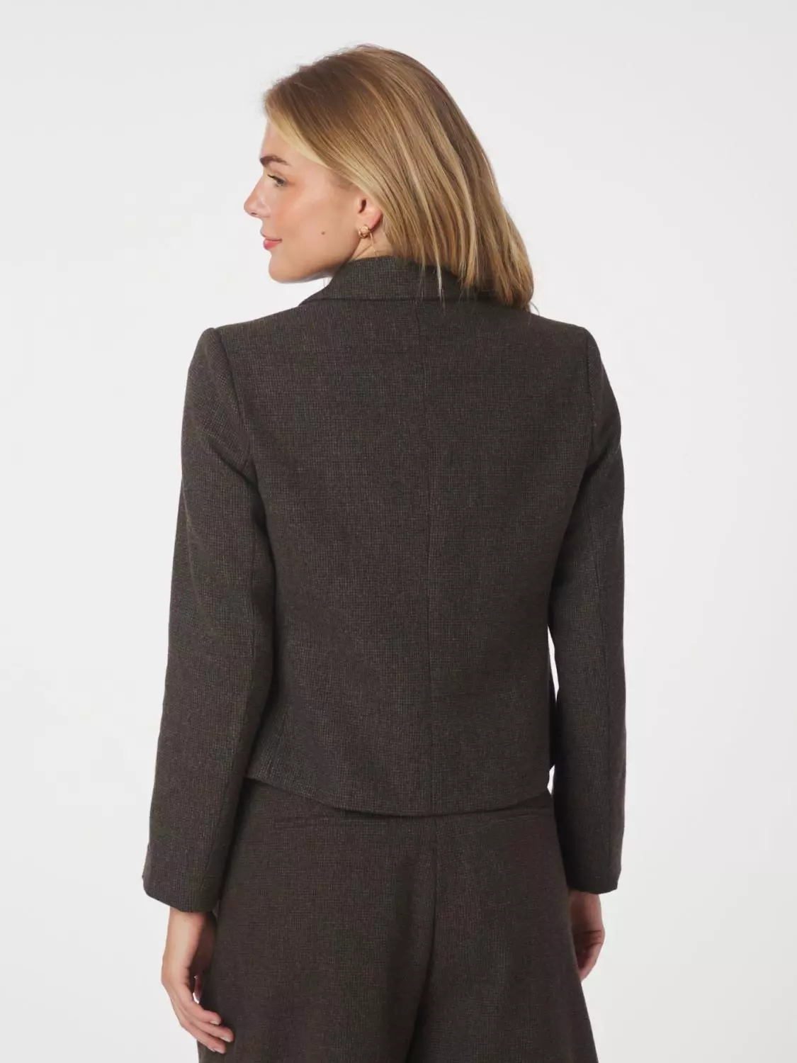 Kuttet mini-blazer med en tettsittende look. Blazeren kommer i en fin ullkvalitet. Modellen er 176 cm høy og har på seg størrelse 36.